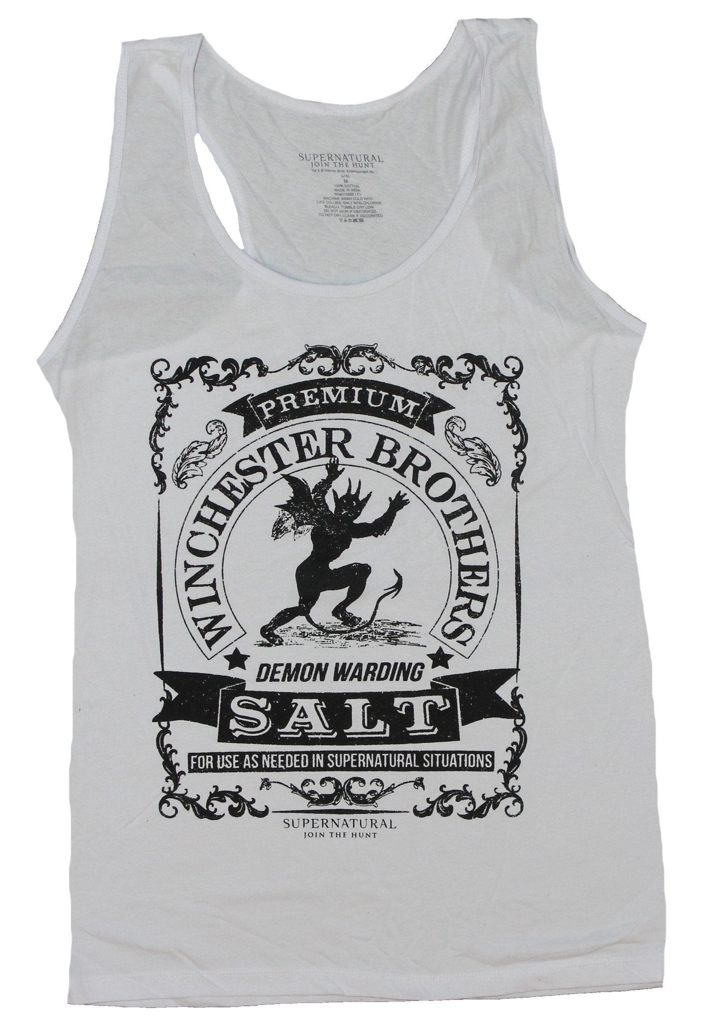 This white 100% cotton tee is perfect for fans of supernatural.