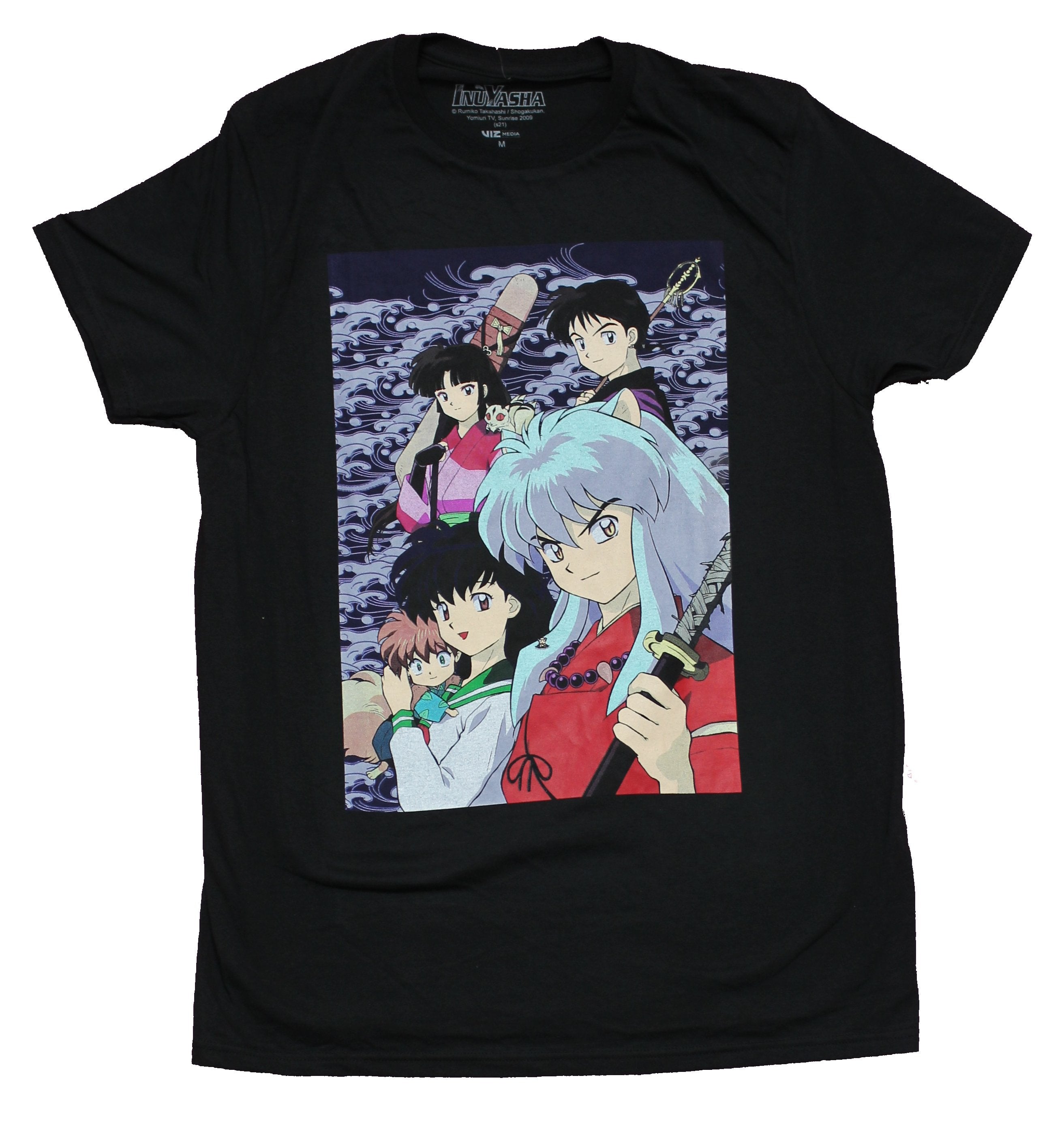 Inuyasha Mens T-Shirt - Group Above Staring Ahead Over Name Image