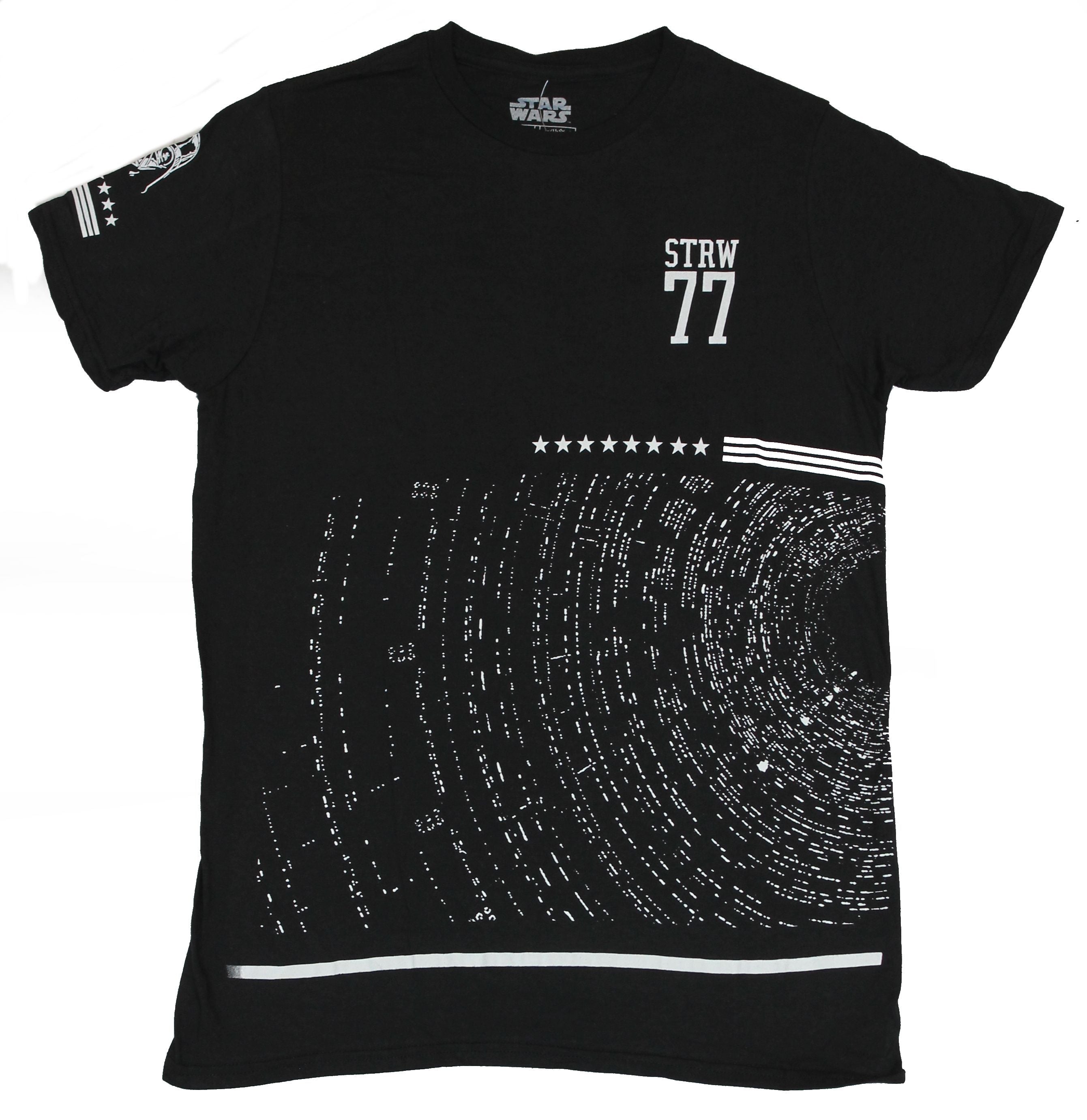 Star Wars Mens T-Shirt - Super Stylized Triple X-Wing Death Star Drop Image